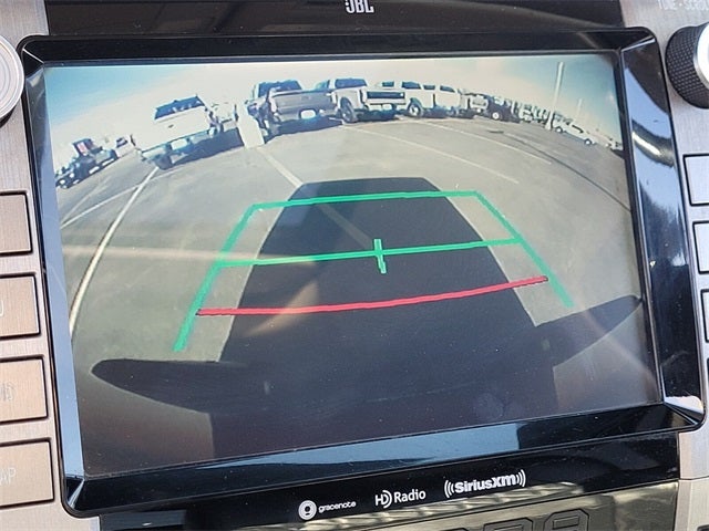 Tundra Platinum, 4D CrewMax, i-Force 5.7L V8 DOHC 32V LEV, 6-Speed Automatic Electronic, 4WD, Barcelona Red Metallic, Black w/Leather Seat Trim, 12 Speakers, 4-Wheel Disc Brakes, 4.30 Axle Ratio, ABS brakes, Active Cruise Control, Air Conditioning, Alloy wheels, AM/FM radio: SiriusXM, Apple CarPlay/Android Auto, Auto High-beam Headlights, Auto-dimming door mirrors, Auto-dimming Rear-View mirror, Automatic temperature control, Brake assist, Bumpers: body-color, Compass, Delay-off headlights, Driver door bin, Driver vanity mirror, Dual front impact airbags, Dual front side impact airbags, Electronic Stability Control, Emergency communication system: Safety Connect with 1-year trial, Exterior Parking Camera Rear, Front anti-roll bar, Front Bucket Seats, Front Center Armrest, Front dual zone A/C, Front fog lights, Front reading lights, Front wheel independent suspension, Fully automatic headlights, Garage door transmitter: HomeLink, Heated & Ventilated Front Bucket Seats, Heated door mirrors, Heated front seats, Illuminated entry, Knee airbag, Leather Seat Trim (LE), Low tire pressure warning, Memory seat, Navigation System, Occupant sensing airbag, Outside temperature display, Overhead airbag, Overhead console, Panic alarm, Passenger door bin, Passenger vanity mirror, Power door mirrors, Power driver seat, Power passenger seat, Power steering, Power windows, Radio data system, Radio: Premium JBL Audio w/Dynamic Navigation, Rear reading lights, Rear seat center armrest, Rear step bumper, Rear window defroster, Remote Connect, Remote keyless entry, Safety Connect, Security system, Service Connect, SiriusXM Radio, Speed control, Speed-sensing steering, Split folding rear seat, Steering wheel memory, Steering wheel mounted audio controls, Tachometer, Telescoping steering wheel, Tilt steering wheel, Traction control, Trip computer, Turn signal indicator mirrors, Variably intermittent wipers, Ventilated front seats, Voltmeter, Wheels: 20 6-Spoke Alloy w/Accented Spokes.