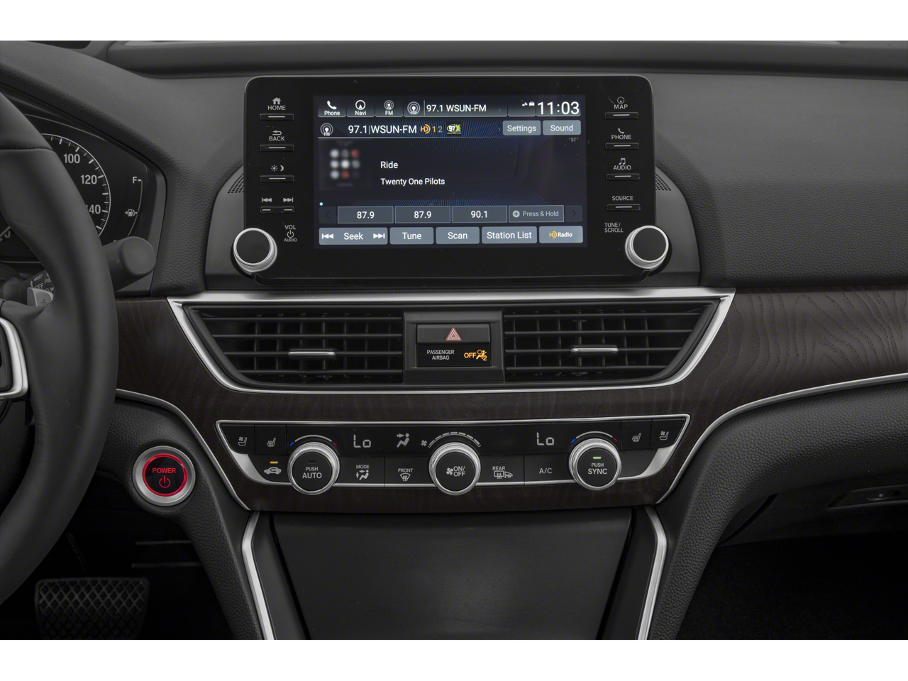 - Radio: 450-Watt AM/FM/HD Premium Audio System -inc: 10 speakers including subwoofer, 8" display audio w/high-resolution electrostatic touch-screen, knobs and hard keys for primary controls and customizable feature settings, Bluetooth® HandsFreeLink, Bluetooth® streaming audio, SMS text message function, Radio Data System (RDS), Speed-Sensitive Volume Compensation (SVC), HondaLink, Apple CarPlay integration, Android Auto integration, 1 2.5-amp USB smartphone/audio interface port in front console, 1 2.5-amp USB charging port in front console, 2 2nd-row 2.5-amp USB charging ports, Honda Satellite-Linked Navigation System w/voice recognition and Honda HD digital traffic, HondaLink subscription services, Wi-Fi hotspot capability, illuminated steering wheel-mounted controls, body-colored fin-type roof-mounted antenna and SiriusXM radio, SiriusXM requires a subscription after any trial period, If you decide to continue your SiriusXM service at the end of your trial subscription, the plan you choose will automatically renew and bill at then-current rates until you call SiriusXM at 1-866-635-2349 to cancel, See our Customer Agreement for complete terms at www.siriusxm.com, Fees and programming subject to change, Available in the 48 contiguous United States and D.C, SiriusXM and all related marks and logos are trademarks of SiriusXM Radio Inc, The Honda Satellite-Linked Navigation System is standard on Touring trims in the United States, Canada and Puerto Rico, (Honda HD Digital Traffic service only available in the United States, except Alaska), Please see your Honda dealer for details, HondaLink Subscription Services come w/complimentary trials of Security for one year and a Remote/Concierge trial for three months, Enrollment is required to access the Remote/Concierge trial and to access certain features of Security, At the end of each trial period, purchase of a subscription is required to continue the respective services