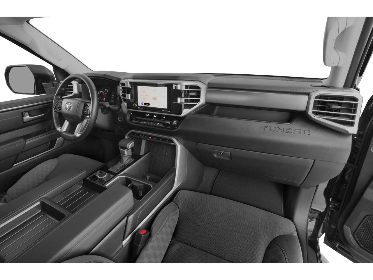 Step inside the Tundra SR5 and discover a cabin that combines style and functionality. Enjoy the convenience of Apple CarPlay and Android Auto, the safety of a Blind Spot Monitor and Parking Support Alert/Brake, and the comfort of Fabric Seat Trim and Front Bucket Seats. The 18 Dark Gray Metallic Alloy Wheels add a bold, confident stance to this impressive truck.